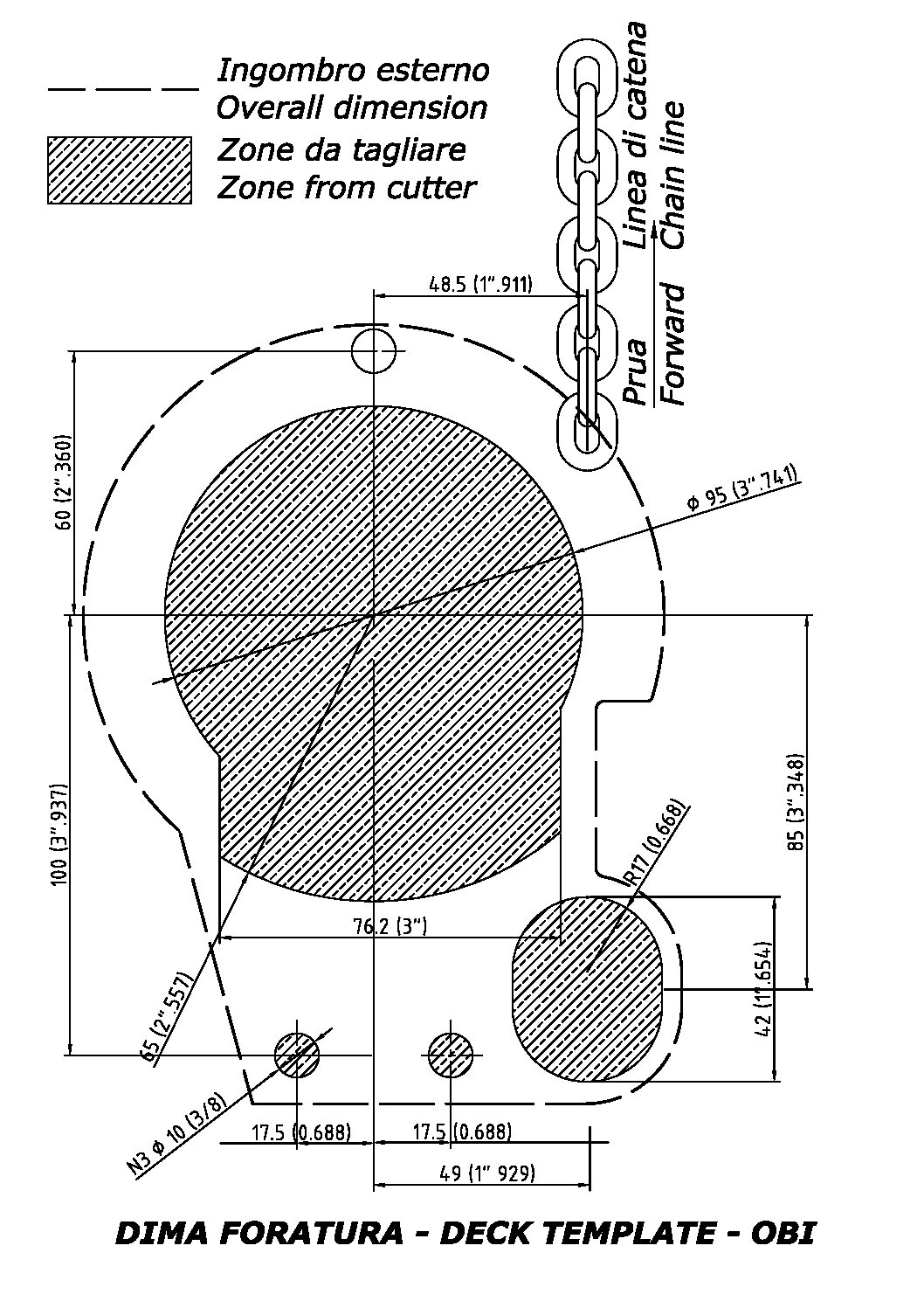 Anodized aluminium body. Chromed brass gypsy. Built-in chain counter sensor and line tensioner. Solenoid and friction release lever included.