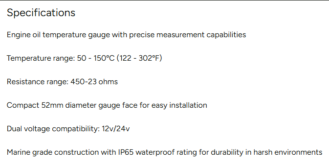 Wema Oil Temperature Gauge White